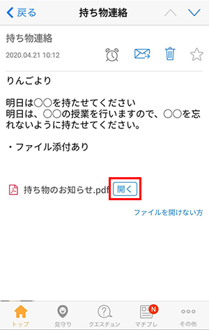 ※「開く」ボタンはすぐに消えてしまうので、早めにタップをお願いいたします。