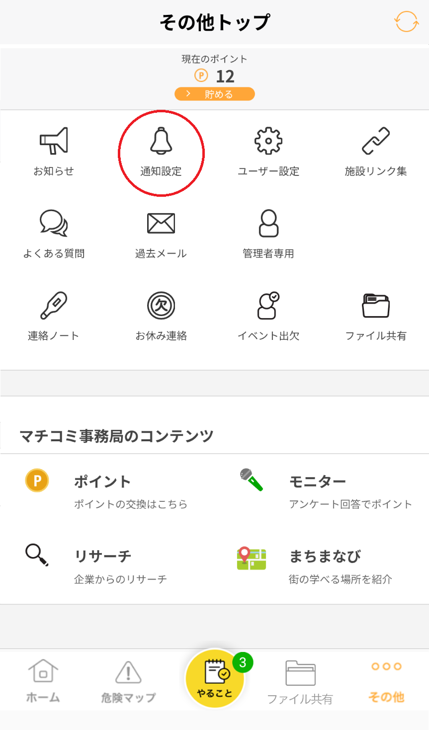 手順1 アプリ内[その他]>[通知設定]をタップ
