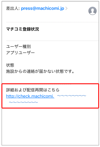 返信メール文面内「▼詳細および配信再開はこちら▼」のURLにアクセスします。